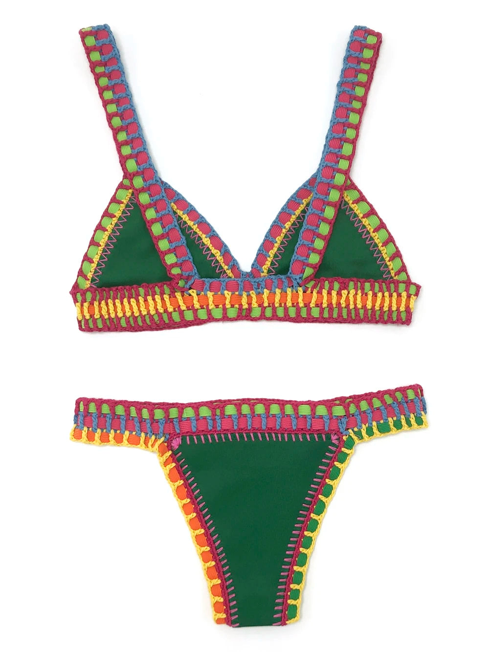 Conçu en crochet extensible avec une touche de spandex pour plus de confort, ce bikini s’ajuste parfaitement grâce à ses bretelles réglables. C’est le combo parfait entre style bohème et sensualité estivale !